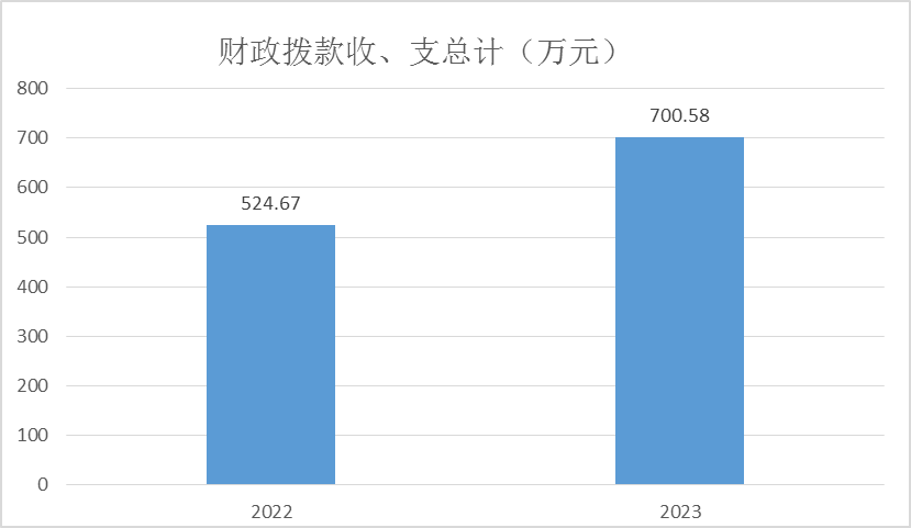 2023年度财政拨款收、支总计均为700.58万元。与2022年度相比,财政拨款收、支总计各增加175.91万元,增长33.53%。主要变动原因是项目支出预算增加。