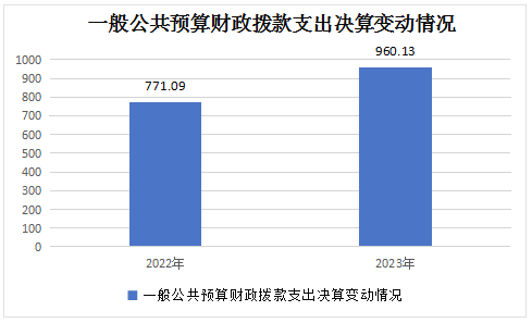 2023年度财政拨款收、支总计均为960.13万元。与2022年度相比,财政拨款收、支总计各增加189.04万元,增长24.5%。主要变动原因是项目经费增加,人员工资福利支出增加。