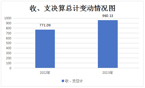 2023年度收、支总计均为960.13万元。与2022年度相比,收、支总计各增加189.04万元,增长24.5%。主要变动原因是项目经费增加,人员工资福利支出增加。
