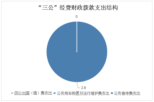 2023年度“三公”经费财政拨款支出决算中,因公出国(境)费支出决算0万元,占0%;公务用车购置及运行维护费支出决算0万元,占0%;公务接待费支出决算2.8万元,占100%。具体情况如下:
