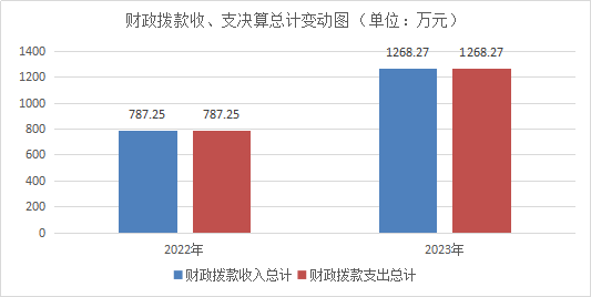 2023年度财政拨款收、支总计均为1268.27万元。与2022年度相比,财政拨款收、支总计各增加481.02万元,增长61.1%。主要变动原因是年初预算项目资金增加。