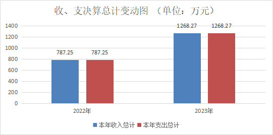 2023年度收、支总计均为1268.27万元。与2022年度相比,收、支总计各增加481.02万元,增长61.1%。主要变动原因是年初预算项目资金增加。