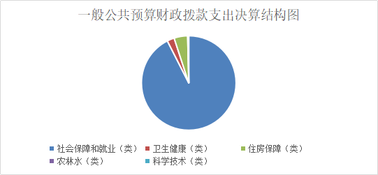 2023年度一般公共预算财政拨款支出1268.27万元,主要用于以下方面:科学技术支出1.85万元,占0.14%;社会保障和就业支出1173.4万元,占92.52%;卫生健康支出31.36万元,占2.47%;农林水支出3万元,占0.24%;住房保障支出58.66万元,占4.63%。