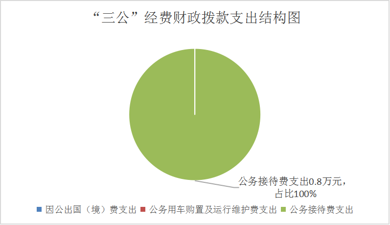 2023年度“三公”经费财政拨款支出决算中,因公出国(境)费支出决算0万元,占0%;公务用车购置及运行维护费支出决算0万元,占0%;公务接待费支出决算0.8万元,占100%。具体情况如下: