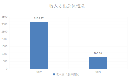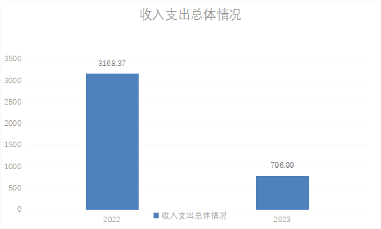 2023年度收、支总计796.99万元。与2022年相比,收、支总计各减少2371.38万元,降幅74.84%。主要变动原因是项目数减少。