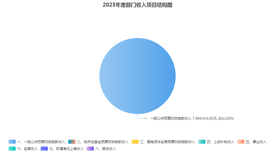 2023年本年收入合计796.99万元,其中:一般公共预算财政拨款收入796.99万元,占100%;政府性基金预算财政拨款收入0万元,占0%;国有资本经营预算财政拨款收入0万元,占0%;上级补助收入0万元,占0%;事业收入0万元,占0%;经营收入0万元,占0%;附属单位上缴收入0万元,占0%;其他收入0万元,占0%。
