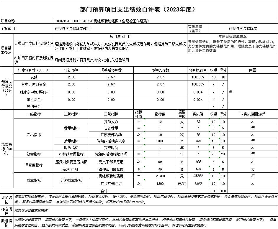组织对2023年度一般公共预算、政府性基金预算、国有资本经营预算、社会保险基金预算以及资本资产、债券资金等全面开展绩效自评,形成《2023年旺苍县医疗保障局部门整体绩效评价报告》见附件(第四部分)。