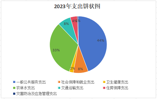 2023年度一般公共预算财政拨款支出1503.6万元,主要用于以下方面:一般公共服务支出666.66万元,占44.35%;社会保障和就业支出127.38万元,占8.47%;卫生健康支出34.34万元,占2.28%;农林水支出493.6万元,占32.83%;交通运输支出112.98万元,占7.51%;住房保障支出60.65万元,占3.88%;灾害防治及应急管理支出8万元,占0.53%。