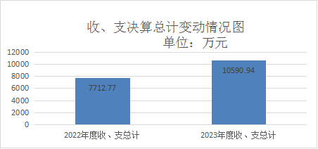2023年本年收、支合计均为10590.54万元,与2022年相比,收、支总计各增加2878.17万元,增长37.32%;主要变动原因:一是增加新进人员工资、绩效等人员经费支出;二是政府性基金预算财政拨款收入增加;三是国有资本经营预算财政拨款收入增加。