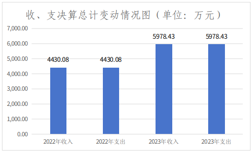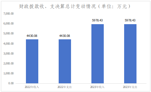 2023年度财政拨款收、支总计均为5978.43万元。与2022年度相比,财政拨款收、支总计各增加1548.35万元,增长35%。主要变动原因是2023年工程项目增加。