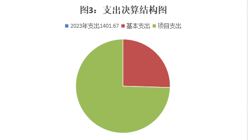 2023年度本年支出合计1401.67万元,其中:基本支出357万元,占25.46%;项目支出1044.67万元,占74.53%;上缴上级支出0万元,占0%;经营支出0万元,占0%;对附属单位补助支出0万元,占0%。