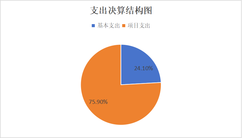 2023年度本年支出合计1057.85万元,其中:基本支出255.14万元,占24.1%;项目支出802.71万元,占75.9%;上缴上级支出0万元,占0%;经营支出0万元,占0%;对附属单位补助支出0万元,占0%。(图3:支出决算结构图)(饼状图)