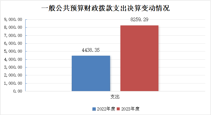 2023年度一般公共预算财政拨款支出8259.29万元,占本年支出合计的100%。与2022年度相比,一般公共预算财政拨款支出增加3820.94万元,增长86.09%。主要变动原因是项目支出增加。