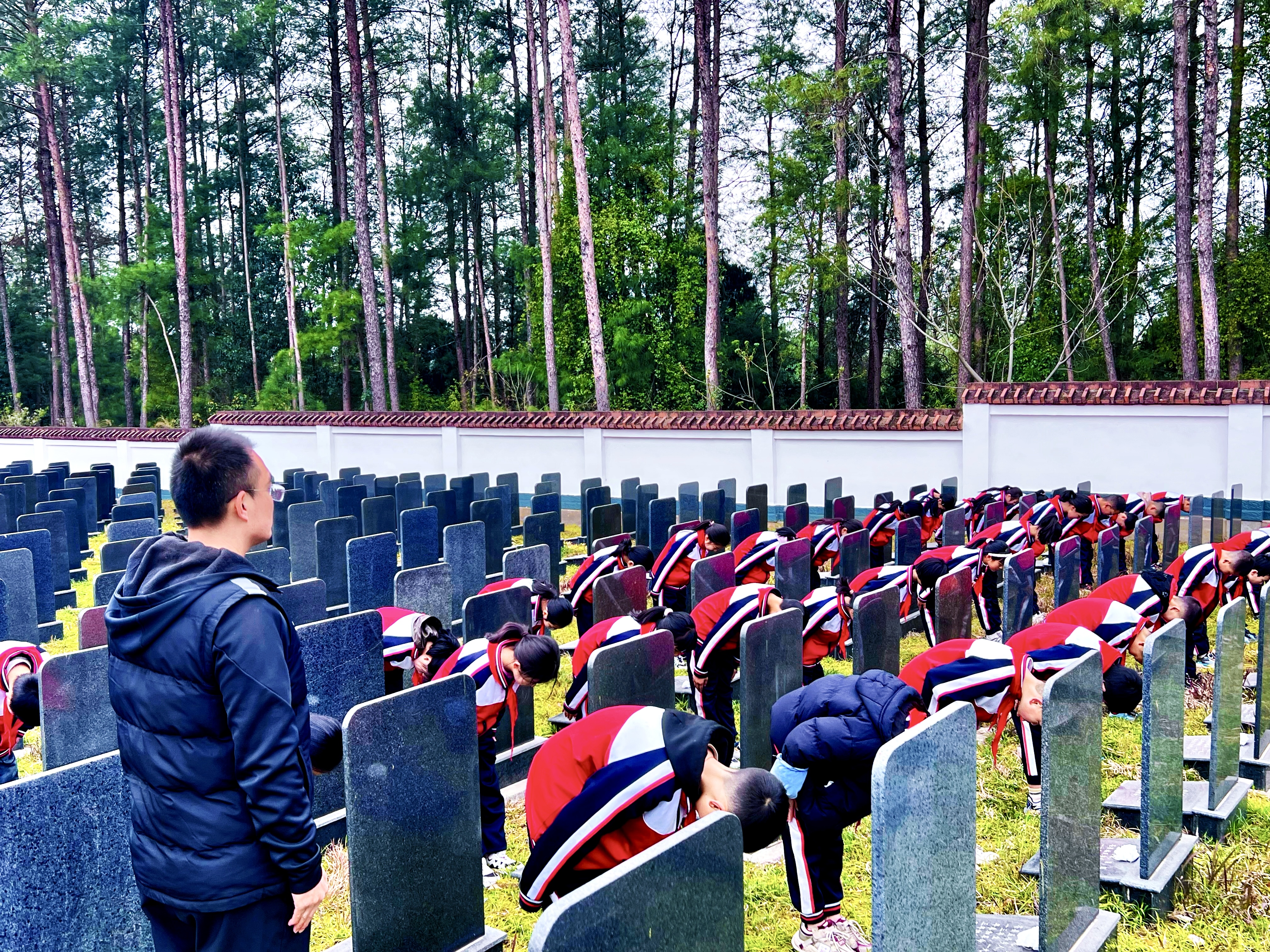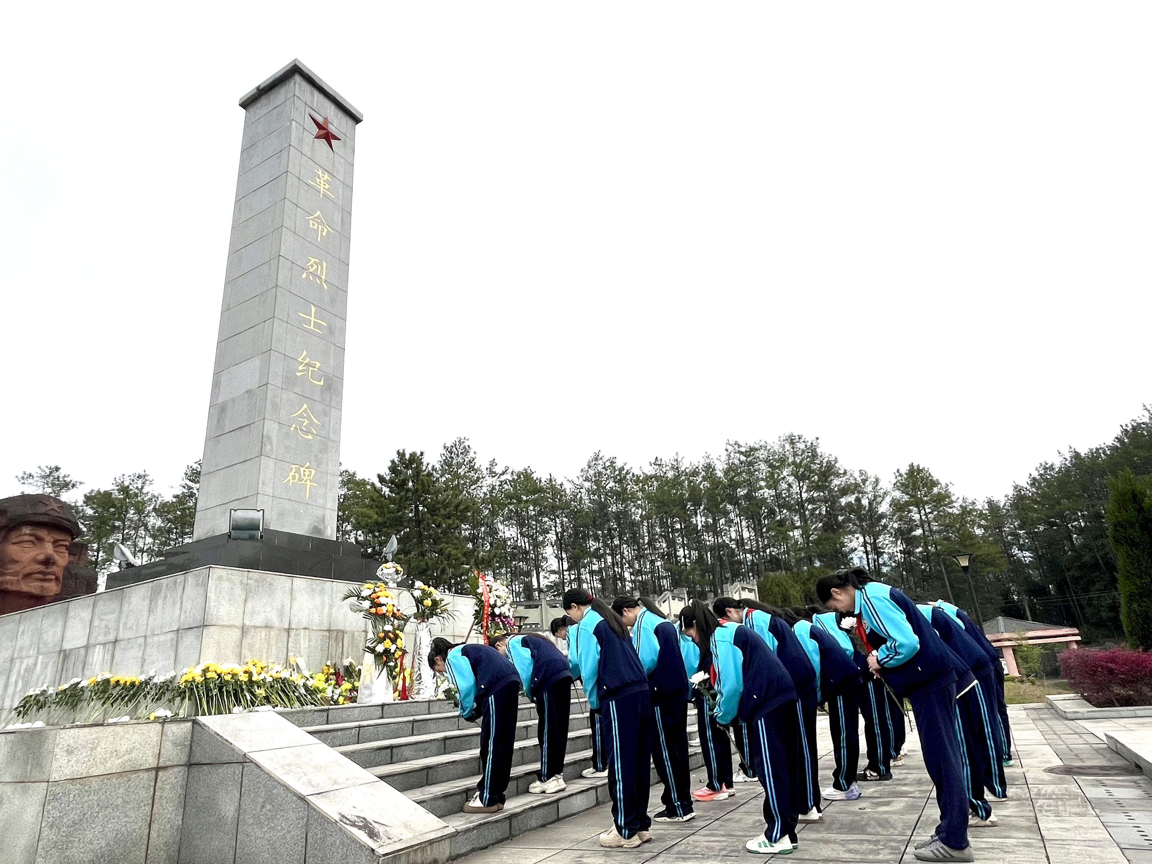 一是守望红色丰碑,厚植家国情怀。活动现场,师生们整齐列队,向革命烈士纪念碑敬献花篮。师生代表手持白菊,缓步绕行烈士墓区,以鲜花敬先烈,深切感知革命烈士的大无畏精神。