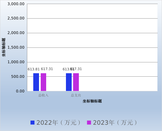 2023年度收、支总计均为617.31万元。与2022年度相比,收入增加3.5万元,增加0.57%;支出增加3.5万元,增加0.57%。主要变动原因是人员经费增加。