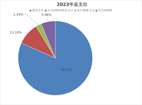 2023年度一般公共预算财政拨款支出617.31万元,主要用于以下方面:一般公共服务支出0万元;教育支出484.01万元,占78.41%;科学技术支出0万元;文化旅游体育与传媒支出0万元;社会保障和就业支出81.35万元,占13.18%;卫生健康支出15.01万元,占2.43%;住房保障支出36.93万元,占5.98%;