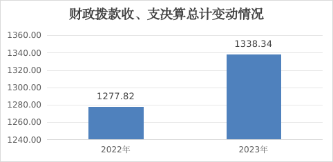 2023年度财政拨款收、支总计均为1338.34万元。与2022年度相比,财政拨款收、支总计各增加60.52万元,增长4.7%。主要变动原因是人员经费标准提升经费增加。