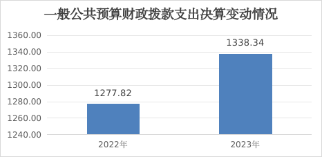 2023年度一般公共预算支出决算数为1338.34,完成预算100%。其中: