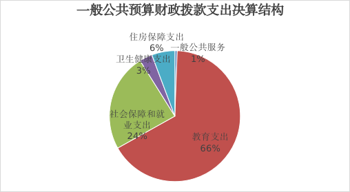 2023年度一般公共预算财政拨款支出518.82万元,主要用于以下方面:一般公共服务支出3万元,占1%;教育支出344.02万元,占66%;社会保障和就业支出125.61万元,占24%;卫生健康支出16.52万元,占3%;住房保障支出29.67万元,占6%。