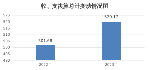 2023年度收、支总计均为520.17万元。与2022年度相比,收、支总计各增加18.49万元,增长3.68%。主要变动原因是人员经费标准提升经费增加。