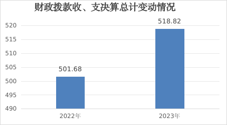 2023年度财政拨款收、支总计均为518.82万元。与2022年度相比,财政拨款收、支总计各增加17.14万元,增长3.4%。主要变动原因是人员经费标准提升经费增加。