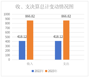 2023年度财政拨款收、支总计均为866.82万元。与2022年度相比,财政拨款收、支总计各增加448.7万元,增长107.31%。主要变动原因是增加了农村全寄宿制学校项目、2023年事业人员基础绩效、2023年退休人员生活补助和2022年30%考核绩效纳入2023年收支。