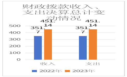 2023年度财政拨款收、支总计均为451.14万元。与2022年度相比,财政拨款收、支总计各增加99.44万元,增长28.27%。主要变动原因是事业单位人员基础绩效、退休人员生活补贴纳入预算。