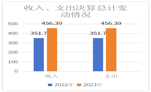 2023年度收、支总计均为456.39万元。与2022年度相比,收、支总计各增加104.69万元,增长29.77%。主要变动原因是事业单位人员基础绩效、退休人员生活补贴、课后延时服务费纳入预算。