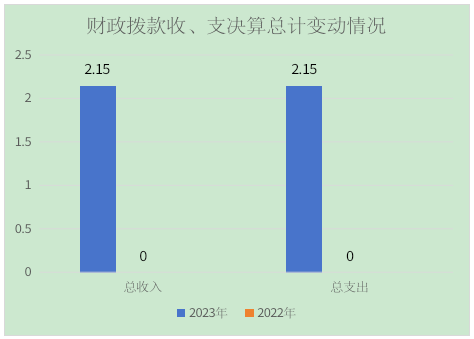 2023年度财政拨款收、支总计均为2.15万元。与2022年度相比,收、支总计各增加2.15万元,增加100%。主要变动原因是本年新增单位。