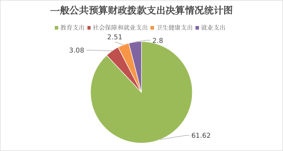 2023年度一般公共预算财政拨款支出70.01万元,主要用于以下方面:教育支出61.62万元,占88.02%;社会保障和就业支出3.08万元,占4.40%;卫生健康支出2.51万元,占3.58%;住房保障支出2.8万元,占4%。