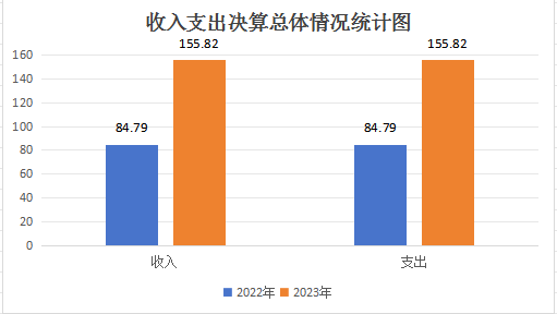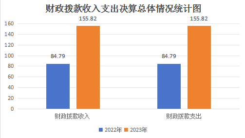 2023年度收、支总计均为155.82万元。与2022年度相比,收、支总计各增加71.03万元,增长83.77%。主要变动原因是2022年在编教师5人,2023年从石桥小学调入2人,各项数据都发生增长。