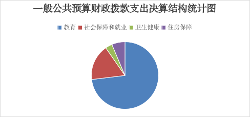 2023年一般公共预算财政拨款支出1509.01万元,主要用于以下方面:教育支出1102.64万元,占73.07%;社会保障和就业支出260.26万元,占17.25%;卫生健康支出50.05万元,占3.32%;住房保障支出96.05万元,占6.36%。