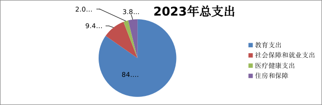 2023年度一般公共预算财政拨款支出2529.22万元,主要用于以下方面:一般公共服务支出0万元,占0%;教育支出2142.4万元,占84.7%;科学技术支出0万元,占0%;文化旅游体育与传媒支出0万元,占0%;社会保障和就业支出238.87万元,占9.44%;卫生健康支出50.9万元,占2.01%;住房保障支出97.05万元,占3.85%。