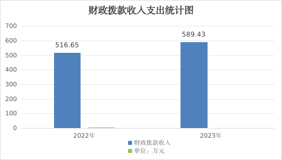 2023年一般公共预算财政拨款支出589.43万元,占本年支出合计的98.34%。与2022年相比,一般公共预算财政拨款支出增加73.08万元,增长14.15%。主要变动原因是人员经费支出增加,新增抚恤金支出。