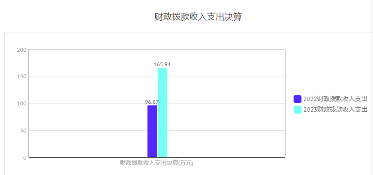 2023年财政拨款收、支总计165.94万元。与2022年相比,财政拨款收、支总计增加69.27万元,增加72%。