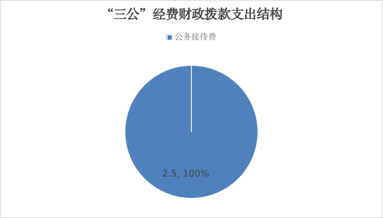 2023年度“三公”经费财政拨款支出决算中,因公出国(境)费支出决算0万元,占0%;公务用车购置及运行维护费支出决算0万元,占0%;公务接待费支出决算2.5万元,占100%。具体情况如下:
