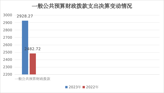 2023年度一般公共预算支出决算数为2928.27,完成预算100%。其中: