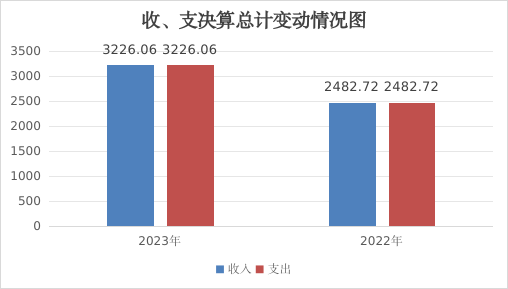 2023年度收、支总计均为3226.06万元。与2022年度相比,收、支总计各增加743.34万元,增长29.94%。主要变动原因是学校教职工增加。