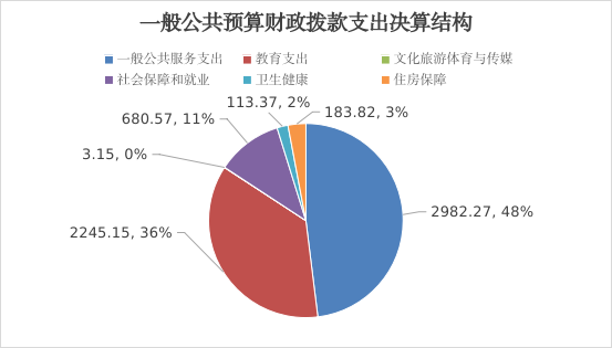 2023年度一般公共预算财政拨款支出2928.27万元,主要用于以下方面:一般公共服务支出2982.27万元,占100%;教育支出2245.15万元,占75.28%;文化旅游体育与传媒支出3.15万元,占0.11%;社会保障和就业支出680.57万元,占22.82%;卫生健康支出113.37万元,占3.80%;住房保障支出183.82万元,占6.28%。