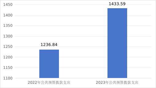 2023年一般公共预算财政拨款支出1433.59万元,占本年支出合计的100%。与2022年支出1236.84万元相比,一般公共预算财政拨款支出增加196.75万元,增加15.91%,主要原因,主要变动原因是本年增加项目资金及退休教师生活补助。