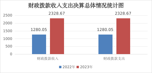 2023年财政拨款收入2328.67万元、支出2328.67万元。与2022年收入1280.05万元相比增加1048.62万元,增加81.92%。与2022年支出1280.05万元相比增加1048.62万元,增加81.92%。主要变动原因是财政增加专项资金及人员经费的投入。