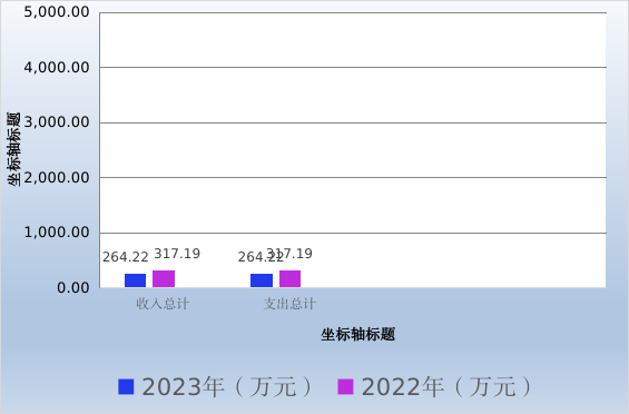 2023年度收、支总计264.22万元。与2022年相比,收入总计减少52.97万元,下降16%。支出总计减少52.97万元,下降16%。主要变动原因是减少了项目支出。