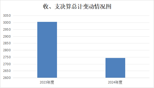 2024年度收、支总计均为2744.57万元。与2023年度相比,收、支总计各减少261.12万元,下降8.68%。主要变动原因是1、减少了二类疫苗的收入。2、减少了新冠防控物资资金。