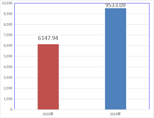 2024年度收、支总计均为9533.09万元。与2023年的6147.94万元相比,收、支总计各增加3385.15万元,增加55%。主要变动原因是2024年尚武家居产业城建设专项债9000万元,增加较多。