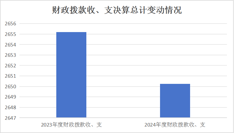 2024年度财政拨款收、支总计均为2650.23万元。与2023年度2655.18万元相比,财政拨款收、支总计各减少4.95万元,下降0.18%。主要变动原因是预算项目减少。
