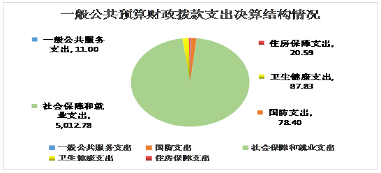 2024年度一般公共预算财政拨款支出5,210.60万元,主要用于以下方面:一般公共服务支出11.00万元,占0.21%;国防支出78.40万元,占1.5%;社会保障和就业支出5,012.78万元,占96.2%;卫生健康支出87.83万元,占1.69%;住房保障支出20.59万元,占0.4%。