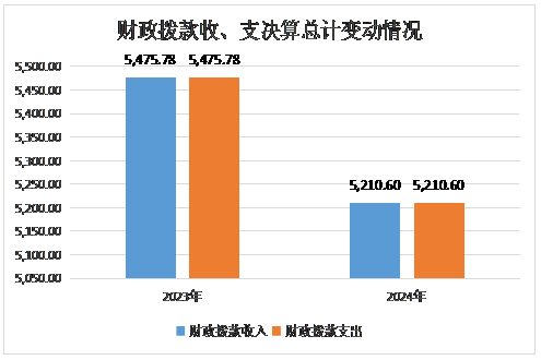 2024年度财政拨款收、支总计均为5,210.60万元。与2023年度相比,财政拨款收、支总计各减少265.18万元,下降4.84%。主要变动原因是减少退役军人人事档案室建设和双拥创建阶段性项目指标。