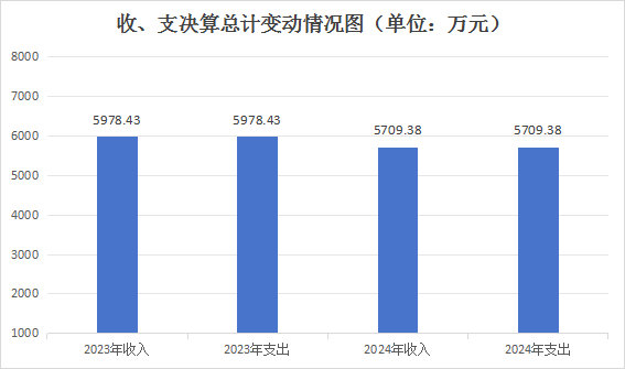 2024年度收、支总计均为5709.38万元。与2023年度相比,收、支总计各减少269.05万元,下降4.5%。主要变动原因是2024年工程项目减少。