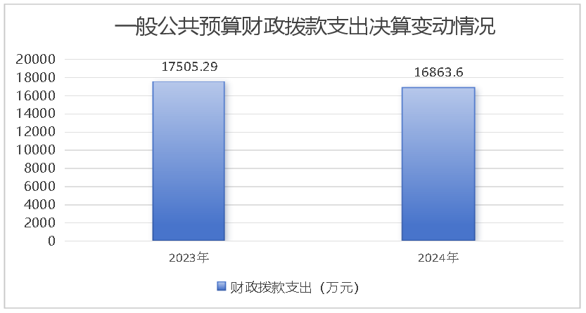 2024年度一般公共预算财政拨款支出16863.60万元,占本年支出合计的98.08%。与2023年度相比,一般公共预算财政拨款支出减少641.69万元,下降3.67%。主要变动原因是特困人员救助供养支出减少,殡葬和养老基建项目减少,故支出减少。
