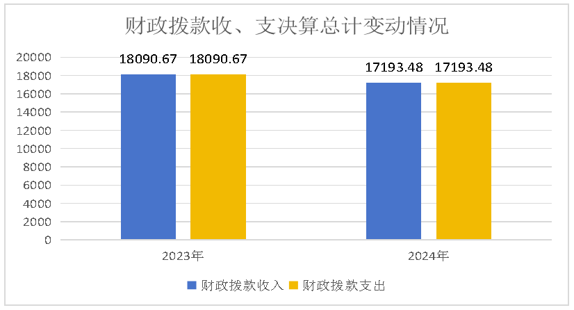 2024年度财政拨款收、支总计均为17193.48万元。与2023年度相比,财政拨款收、支总计各减少897.19万元,下降4.96%。主要变动原因是特困人员救助供养支出减少,殡葬和养老基建项目减少,故支出减少。